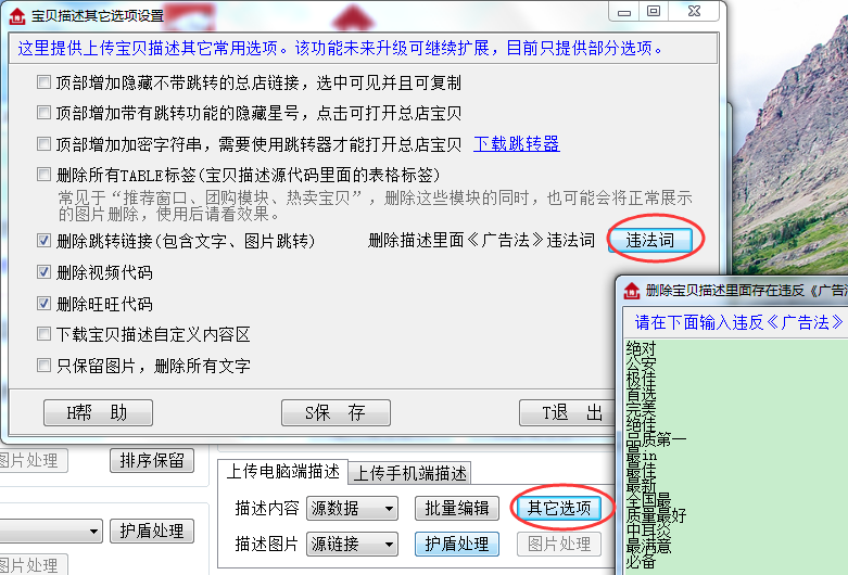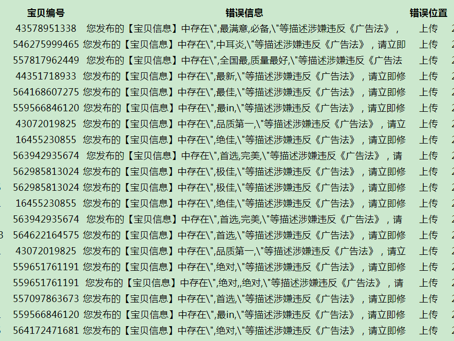 淘宝一键上传增加宝贝信息违反《广告法》关键词自动收集功能