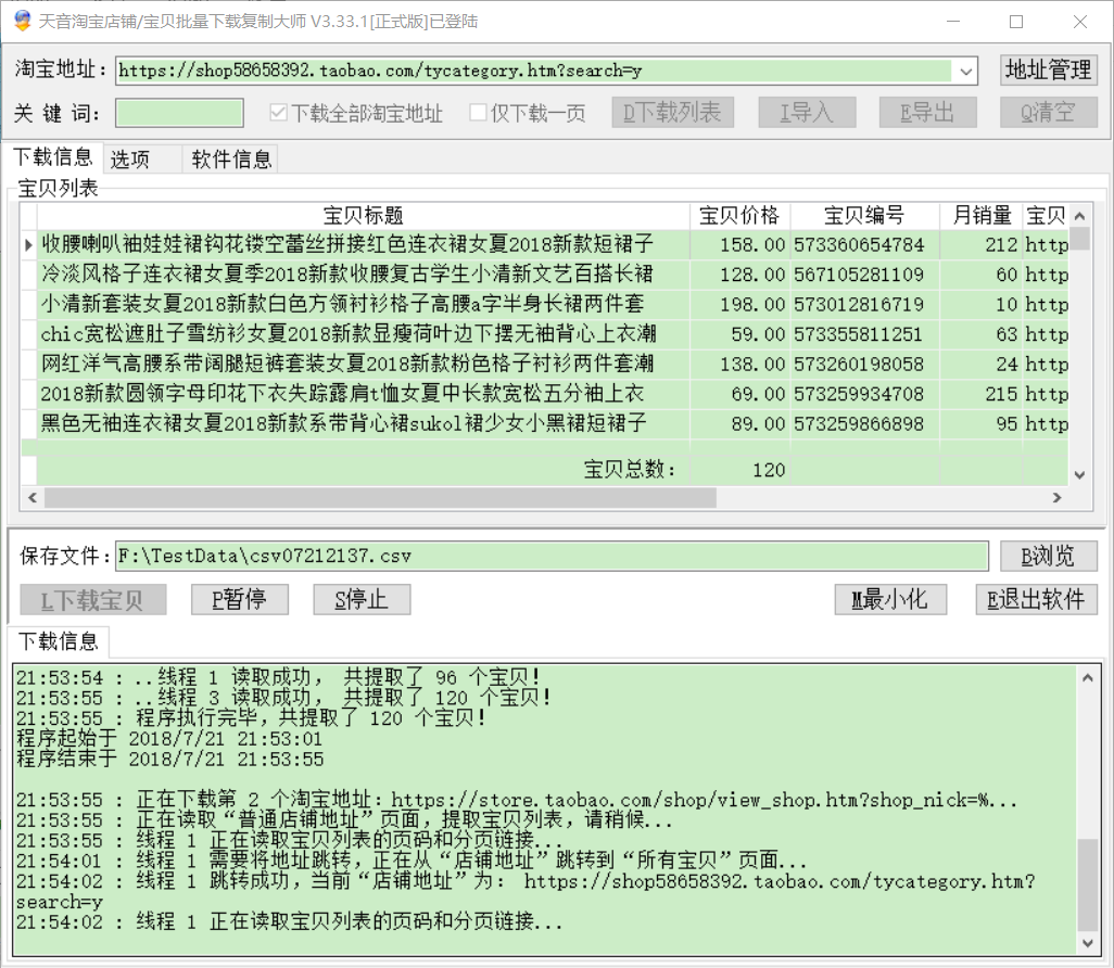复制大师3.33、一键上传和裂变上传最新版本,下载列表支持多个淘宝地址(多个店铺、搜索地址等)一次性下载;