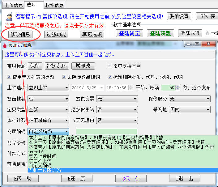 商家编码、sku编码、货号型号增加不同位数随机码;