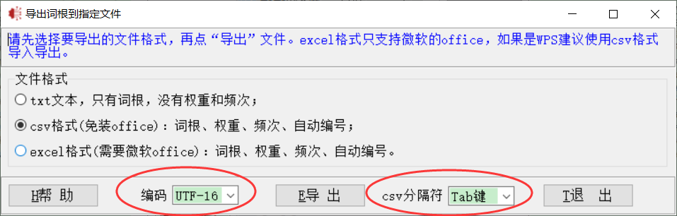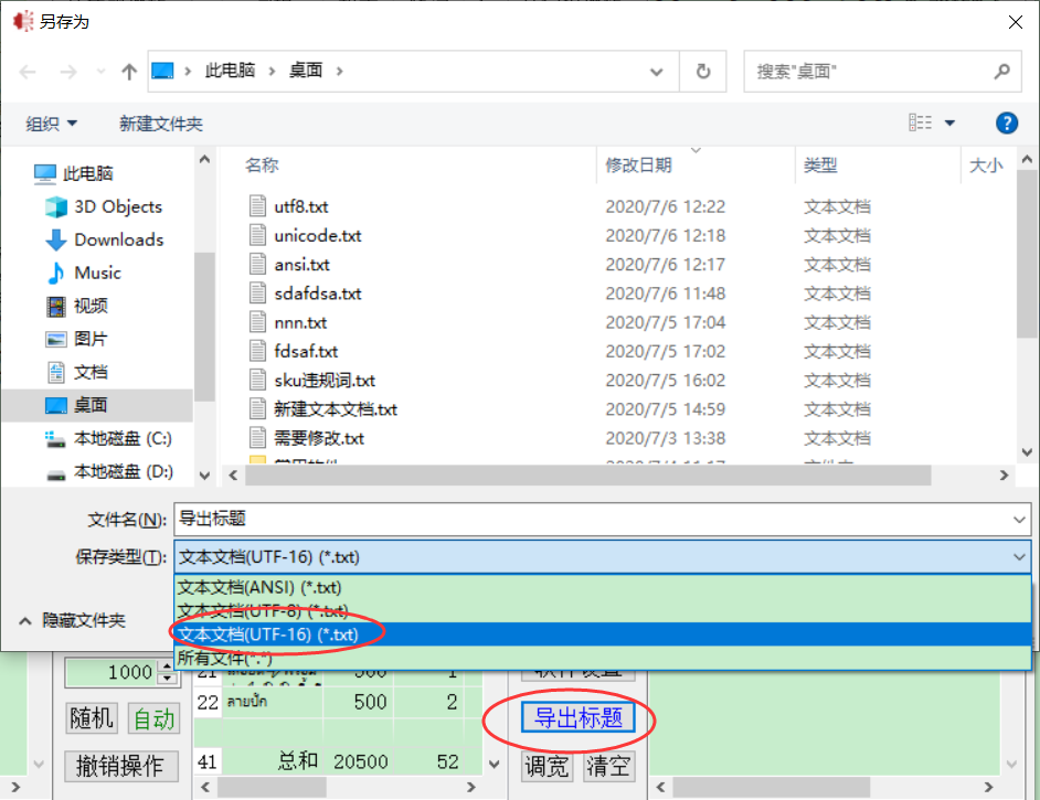 导出标题功能增加ansi、utf-8和utf-16可选;