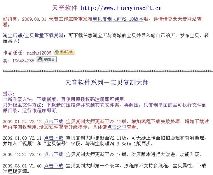 淘宝店铺/宝贝批量下载复制大师 软件智能升级提示