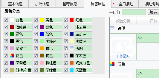 虽然没选规格,仍然可以上传,上传后只有颜色没有规格。在下载过程软件已经将旧版本的自定义属性值删除。这里只上传几张颜色图片作为演示。