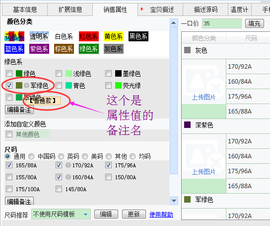 下载新版本的颜色尺码数据,带有属性值备注都会自动下载下来。