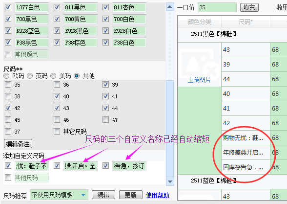 ◆旧版本颜色尺码的别名自动转移到新版本的属性值备注,自动截取前面8个文字,也即保留16个字符;