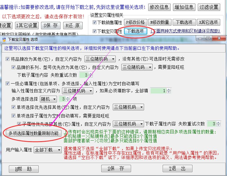 淘宝复制大师下载宝贝属性选项增加多项选择属性数量限制功能